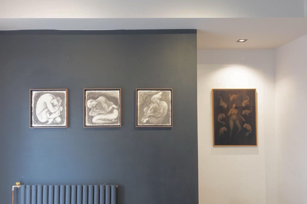 Tja Ling Hu (b. 1987) paints symbolic, time-suspended scenes that resemble revelatory dreams, seeking to surface what lies buried within us. Her works invite viewers into their own subconscious rather than unfolding in linear stories. Through symbolism, she retrieves the solemn and universal moments of human experience, transforming them into deeply introspective images.